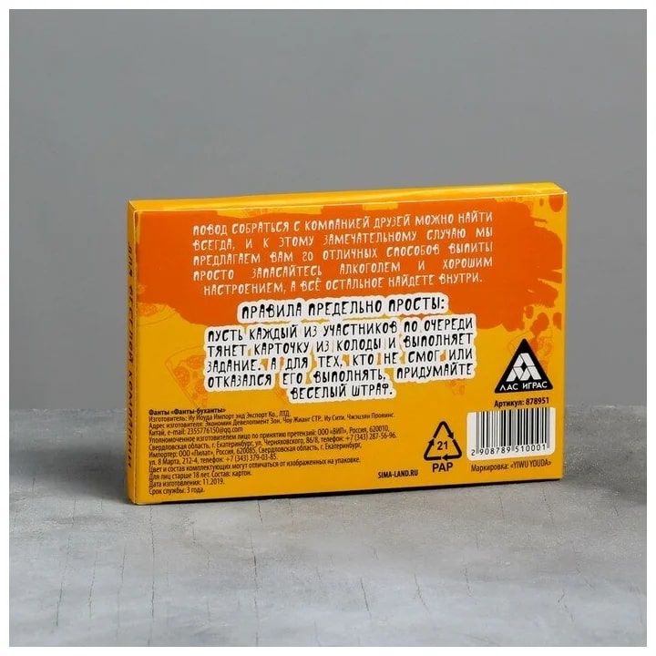 Купить игра для компании "фанты буханты" 20 карт от 100 руб. с доставкой до пункта выдачи в Касимове. Интернет магазин ДекаМаркет. Оплата при получении.